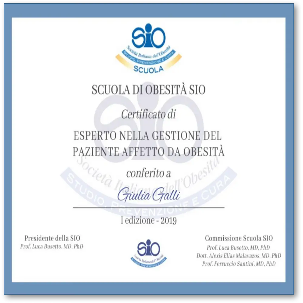 Nel dicembre 2019 ha frequentato la scuola della Società Italiana di Obesità conseguendo il titolo di “Esperto nella gestione del paziente affetto da obesità“.